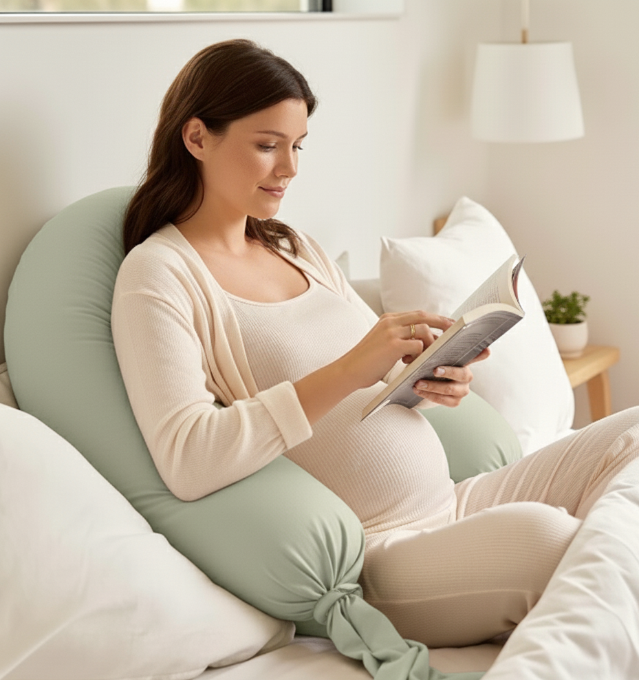 “More than a pregnancy pillow, this is a companion for every chapter of motherhood. Designed to support you from pregnancy through postpartum, nursing, and into family life.